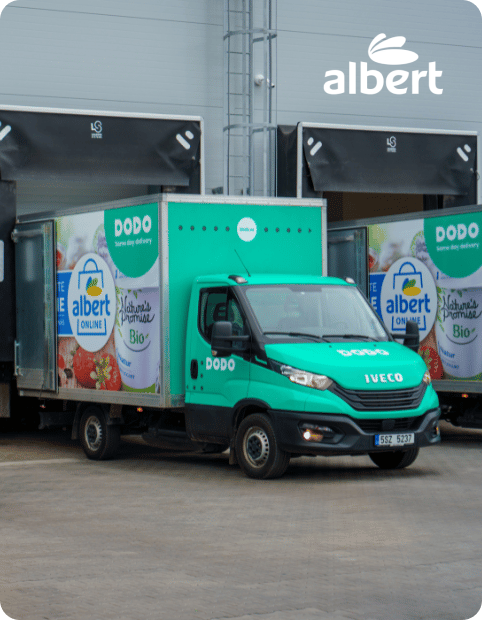 Az Albert kiskereskedelmi lánc Brünnben és Olmützben kínálja ügyfeleinek az online vásárlások kiszállítását, és a DODO szolgáltatásait veszi igénybe a szállítás biztosításához. Jelenleg 10 nagyméretű XL co-branded jármű üzemel, amelyek a hét 7 napján reggel héttől este kilencig járják a morvaországi városokat.